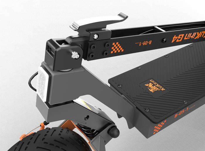 The KuKirin G4 features an advanced high-strength steel-aluminum hybrid unibody construction with a die-cast front axle and forged folding mechanisms. The integrated design utilizes stainless steel fasteners throughout all connection points. This rigid yet lightweight chassis architecture ensures stable power delivery during sustained high-speed operation.