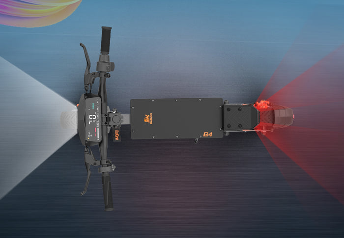 The KuKirin G4 is equipped with a front headlight plus dual turn signals, along with a rear spoiler brake light and dual turn indicator lights, ensuring not only optimal nighttime visibility but also enhanced safety during night rides.