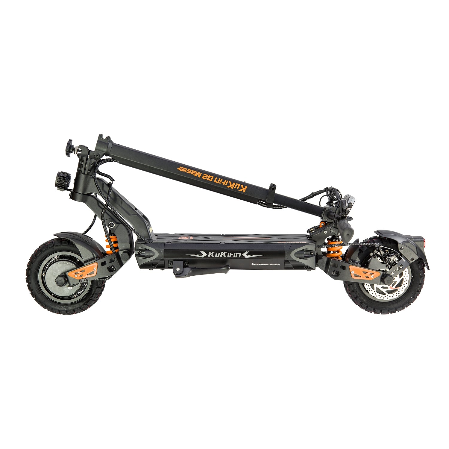 KuKirin G2 Master is made of high-quality aluninum alloy,which makes it’s structure is straong and durable.The strong scooter frame coupled with coupled with a customized folding system provides folding and unfolding stability and enhances the bodywork's structural strength.This makes the motorized scooter more rugged and able to withstand a variety of usage environments.