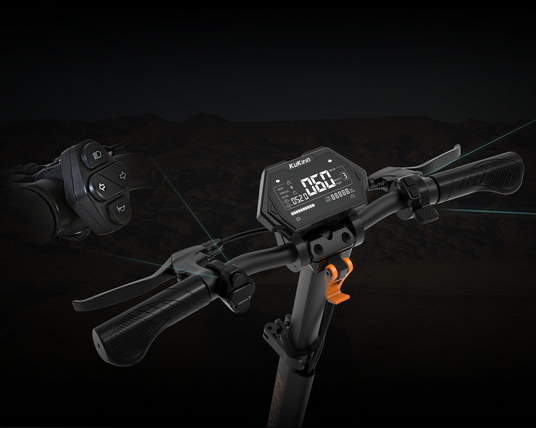 KuKirin G2 Master’s ultra-large display with high definition provides a more detailed image and text display,allowing the driver to view various scooter information and opeartion interface more clear.Driver can control the driving speed and direction on electric scooter through simple operation,which is easy to opearte and fun to drive,providing a better driving experience for customer.