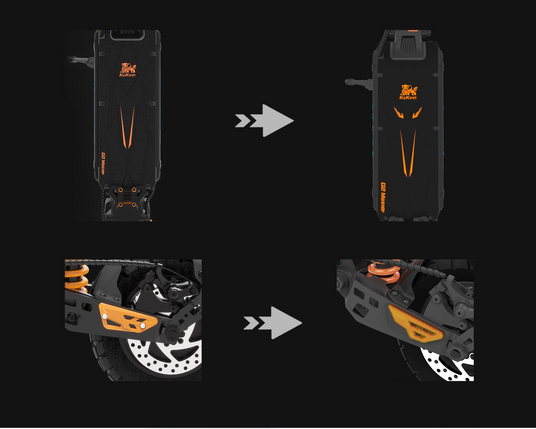 KuKirin G2 Master features a reinforced one-step folding mechanism engineered to handle its powerful dual-motor frame without compromise. With a simple release of the safety latch, the scooter folds securely in seconds — transforming into a compact, easy-to-carry package that fits in car trunks, under desks, or beside your office chair. Despite its robust build, the folding joint is precision-machined for smooth operation and long-term durability, with a locking system that stays firmly in place during transport.