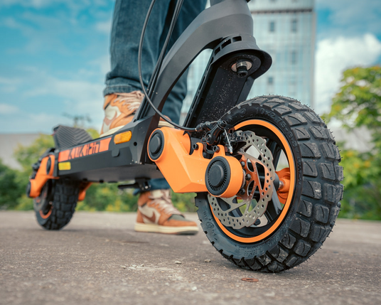 The KuKirin G3 electric scooter is equipped with 10-inch tubeless tires, which not only offer superior puncture resistance but also provide an optimized contact patch, enhancing traction and stability.